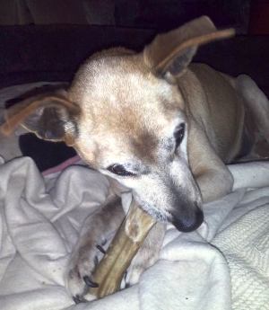 kann und seine Leidenschaft sind Kauknochen, wie man auf den